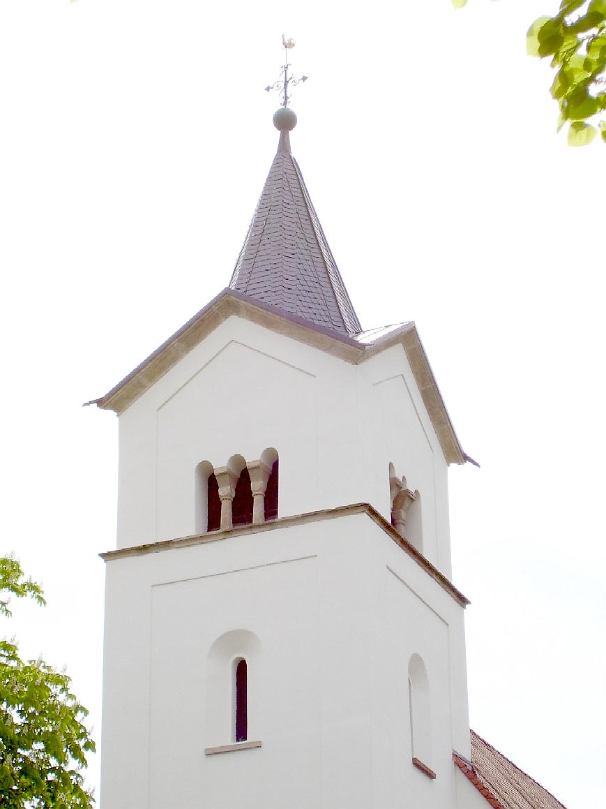 Evangelische Kirche in Iggelheim. Chorflankenturm um 1100 ± 15.